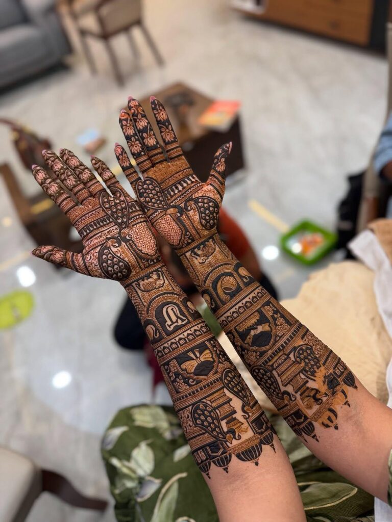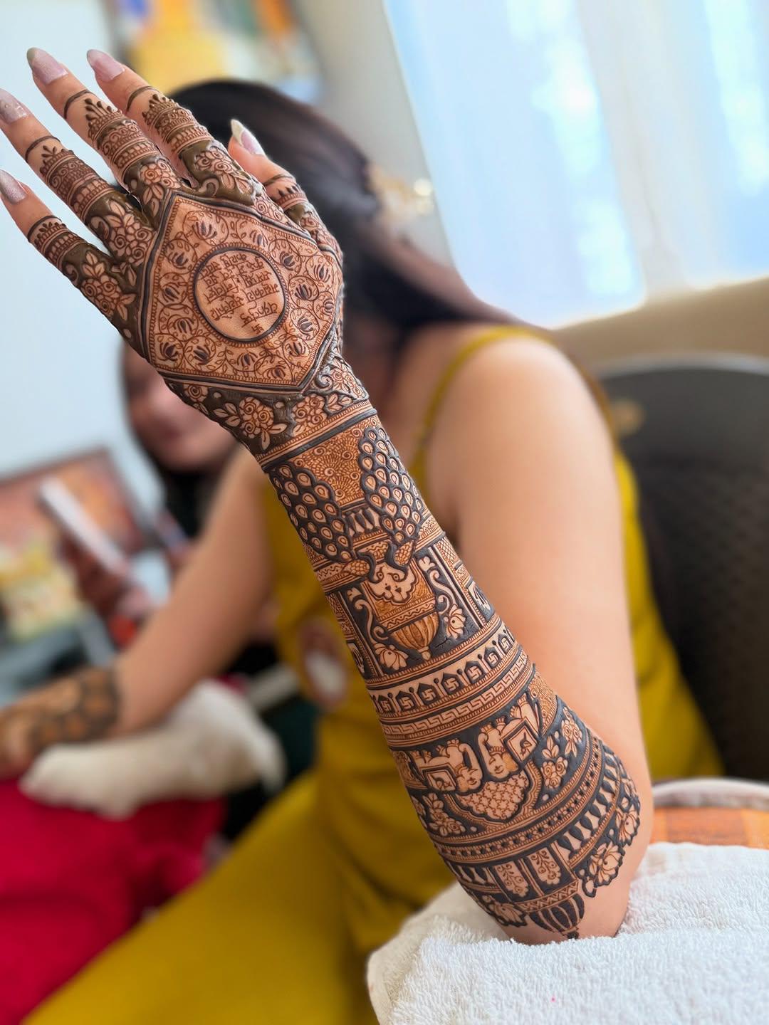 Elegant & personalized full bridal mehndi artwork.